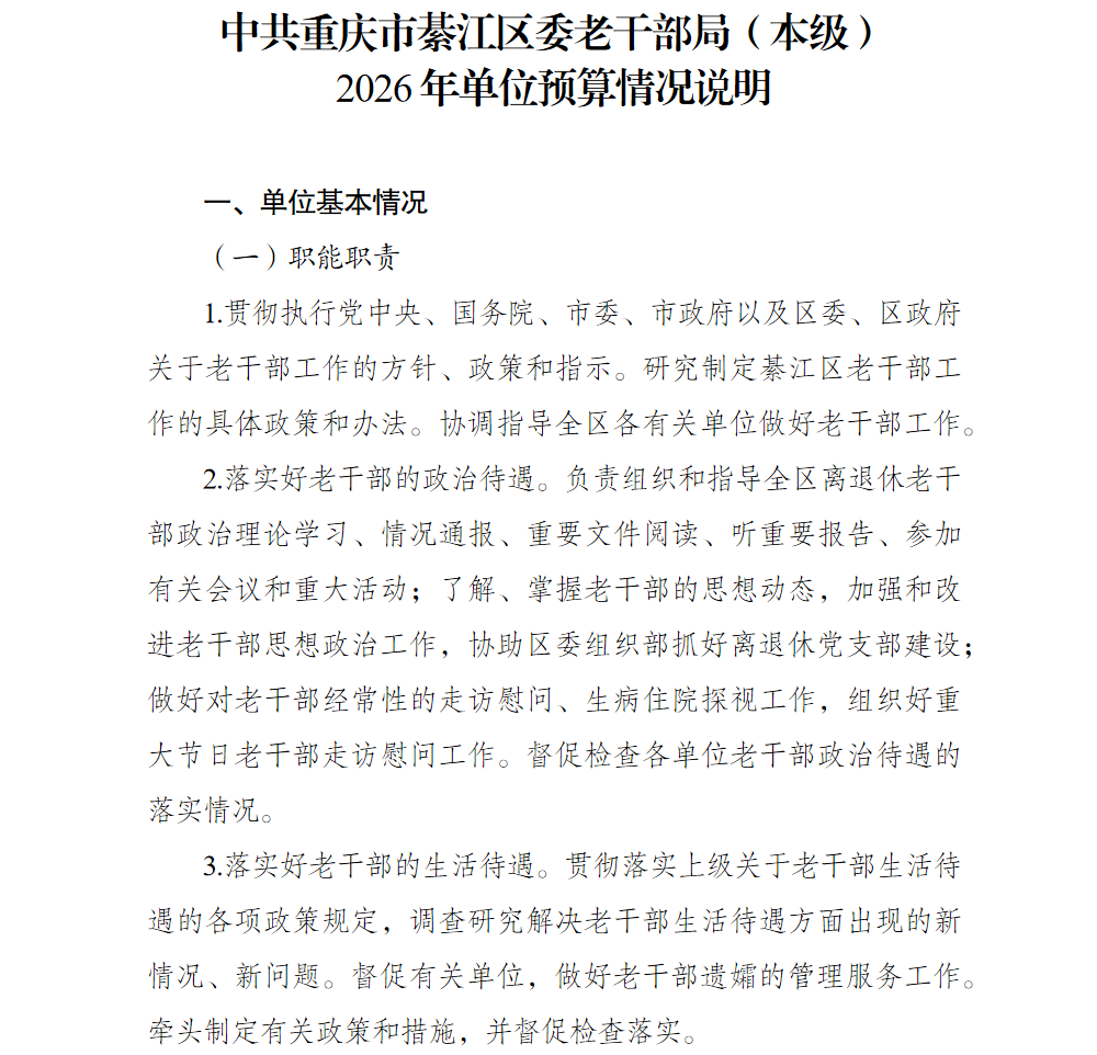 中共重庆市綦江区委老干部局(本级)2026年部门预算情况说明
