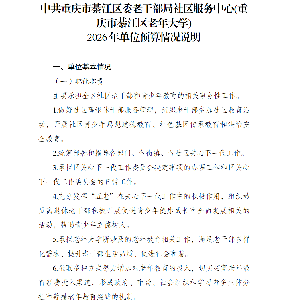 中共重庆市綦江区委老干部局社区服务中心(重庆市綦江区老年大学)2026年单位预算情况说明及附表.pdf