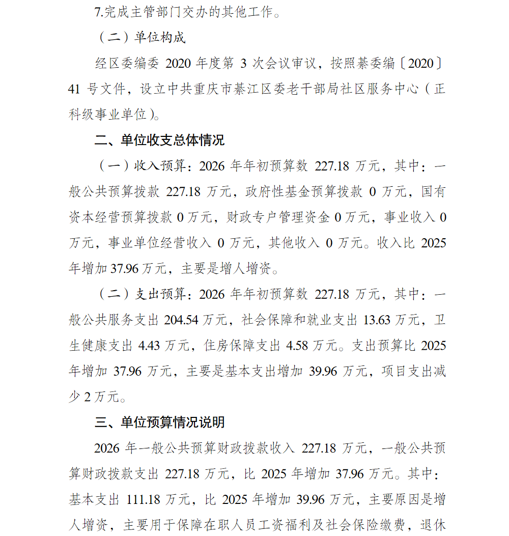 中共重庆市綦江区委老干部局社区服务中心(重庆市綦江区老年大学)2026年部门预算情况说明