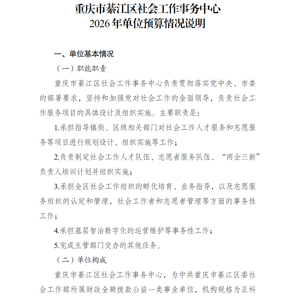 重庆市綦江区社会工作事务中心2026年单位预算情况说明及附表.pdf