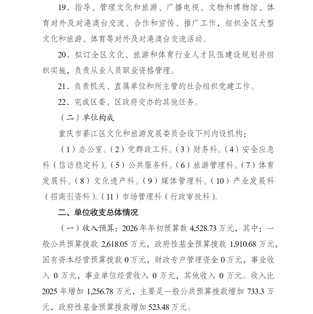 重庆市綦江区文化和旅游发展委员会(本级)2026年部门预算情况说明