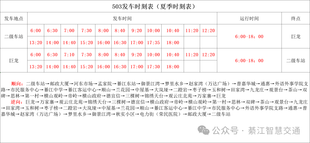 4、綦江街镇公交车夏季最新时间将于2024年6月15日起执行。