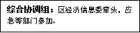 综合协调组:区经济信息委牵头,应急等部门参加,统筹协调现场应急救援和处置,协调调度各方力量参与应急处置及信息报送。