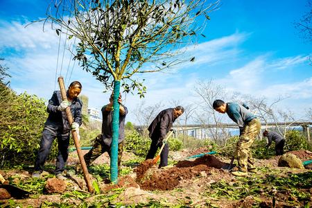 3月12日,我区组织干部职工、志愿者来到古南街道黄木湾路独石沱植树点开展义务植树活动。记者 陈星宇 摄